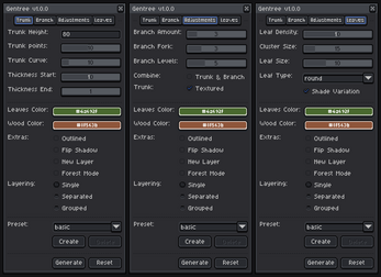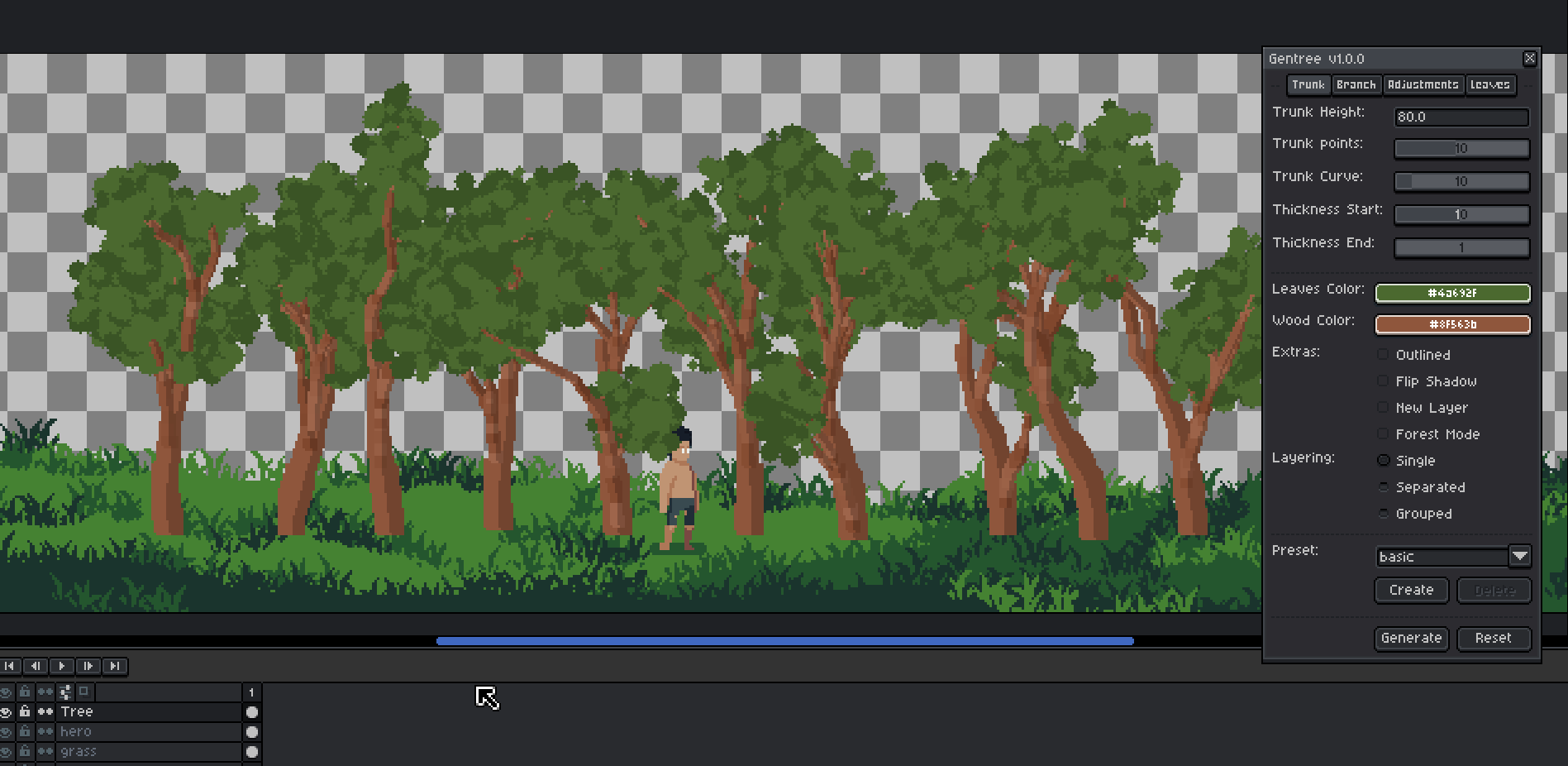 Gentree - Procedurally generates trees and foliage in Aseprite.